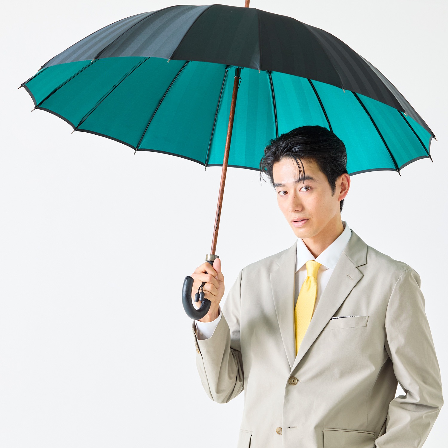 【メンズ雨傘】シャドウ-ブラック×グリーン