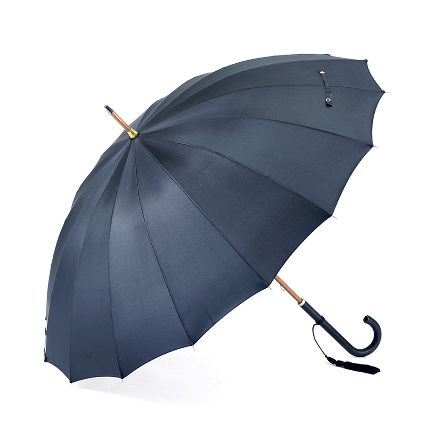 【レディース雨傘】トラッド-16-L-ブラック 牛本革手元