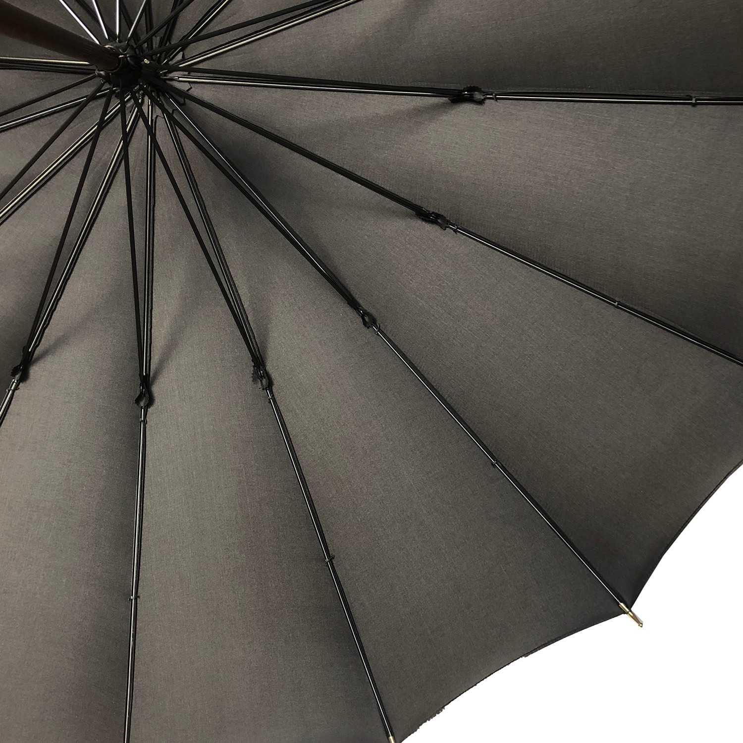 スチール骨の良さは何といってもその張りの美しさ。無地・薄い生地ほどその本領が発揮されます。無駄なシワが生じにくく、ピンと張った生地に雨粒が跳ねる音をお楽しみください。