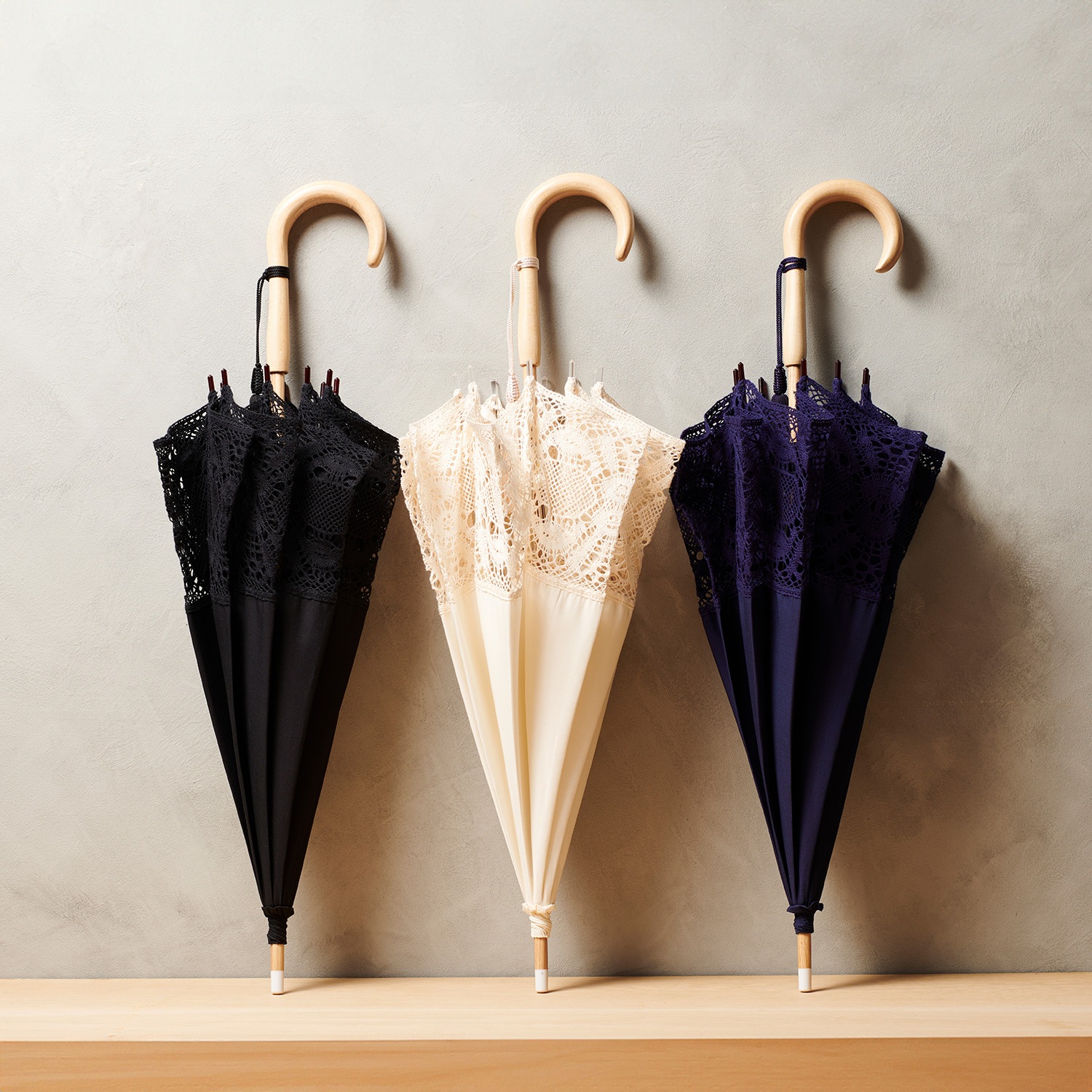 丁寧に編まれたレースと、浅い張りが特徴の仕立ての良さで前原らしい上品なパラソルに仕上がりました。