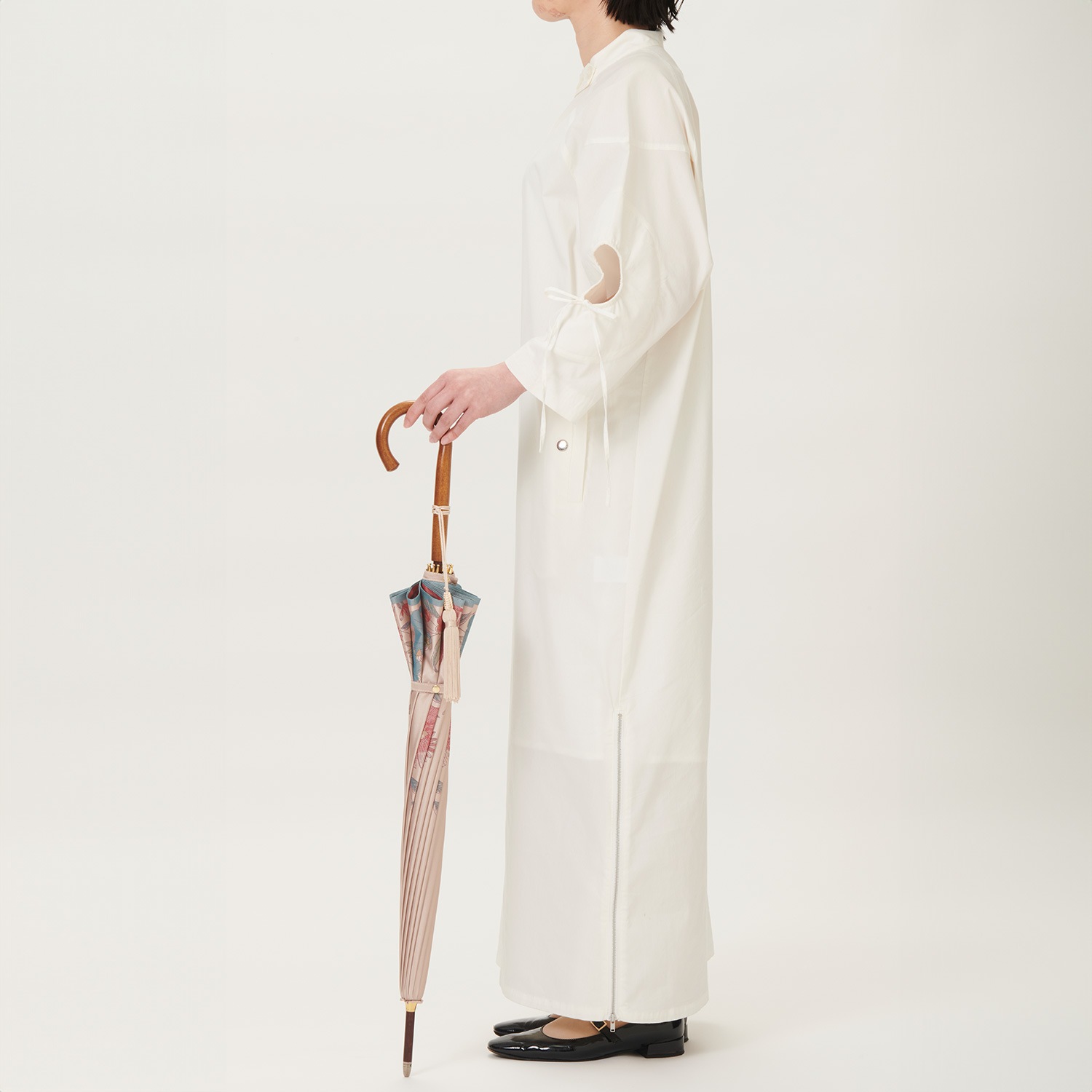 傘の縁(ふち)側に花をちりばめ、中心部分にかけては余白を広くとり、メリハリのあるデザインに仕上げました。