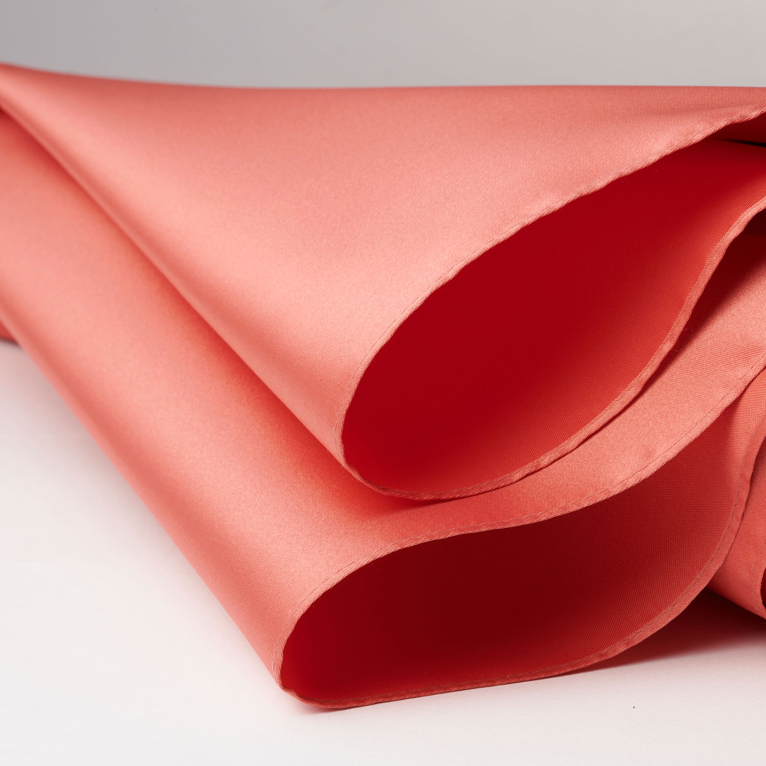 ※サテン生地…光沢感を出すために、経糸(たていと)と緯糸(よこいと)が交差する点をできるだけ目立させず、織物の表面に経糸または緯糸を長く浮かせる織り方。