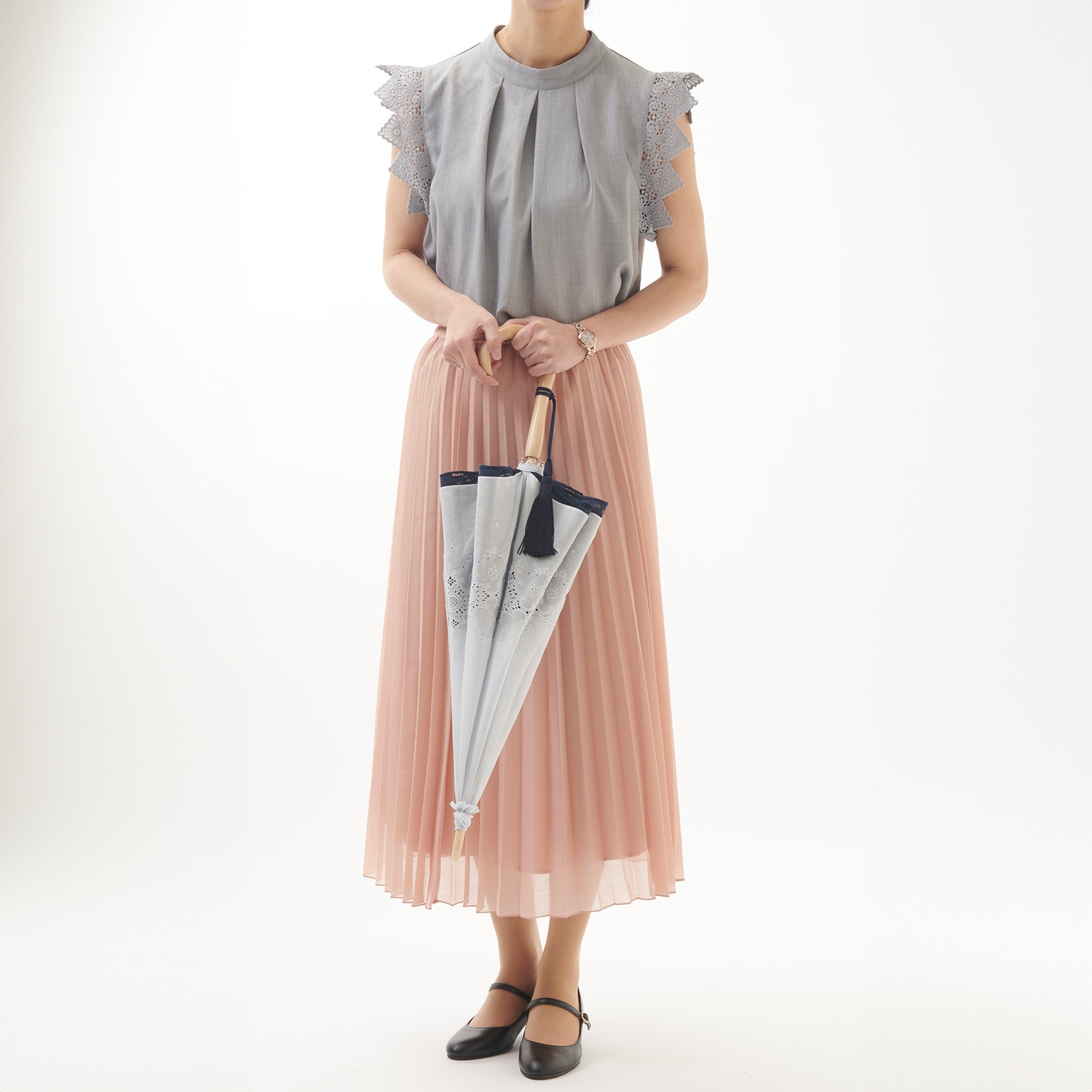※完売につき販売終了【レディース日傘】レース-かわず張り-エトワール-ペールグレー