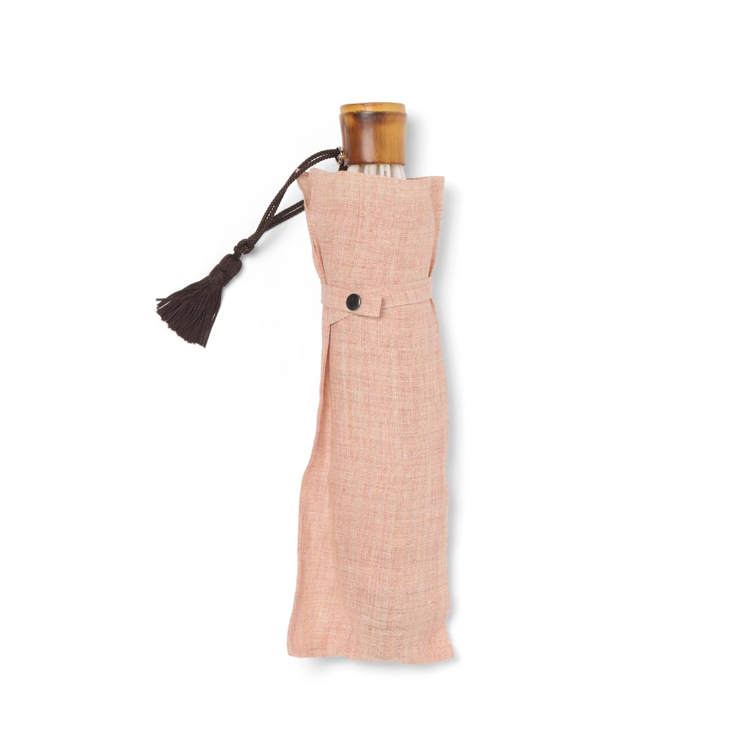 手間暇かけて織られた生地は、麻独特のシャリ感や硬めのコシが魅力です。素材本来の質感を生かすため、加工はしていません。ざっくりとした織り目は風通しよく、特に初夏や晩秋など少し暑さが和らぐ季節にぴったりの日傘です。