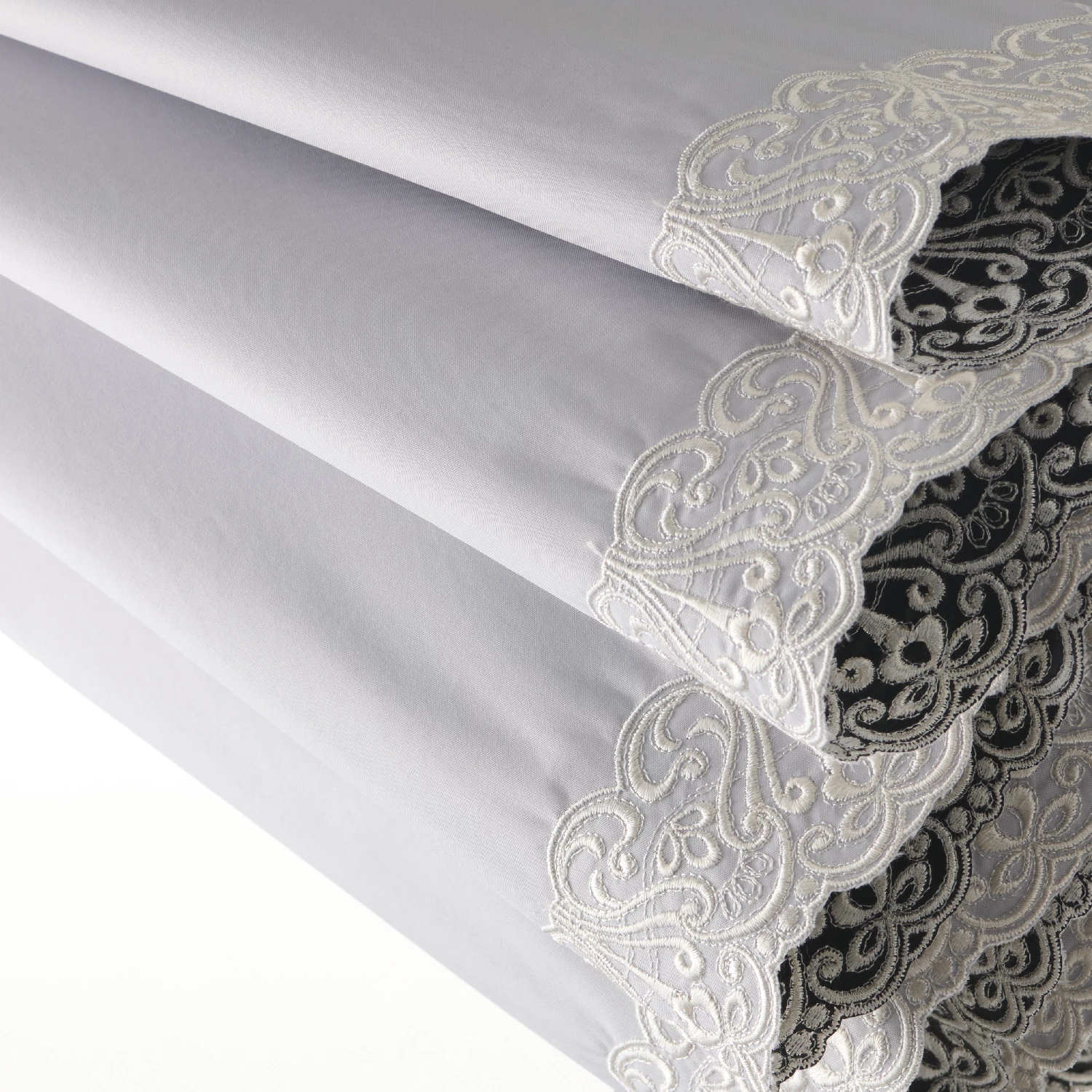 縁部分を花びらのようにカットして刺繍で縁取りをする“スカラーカット”加工もポイントです。
