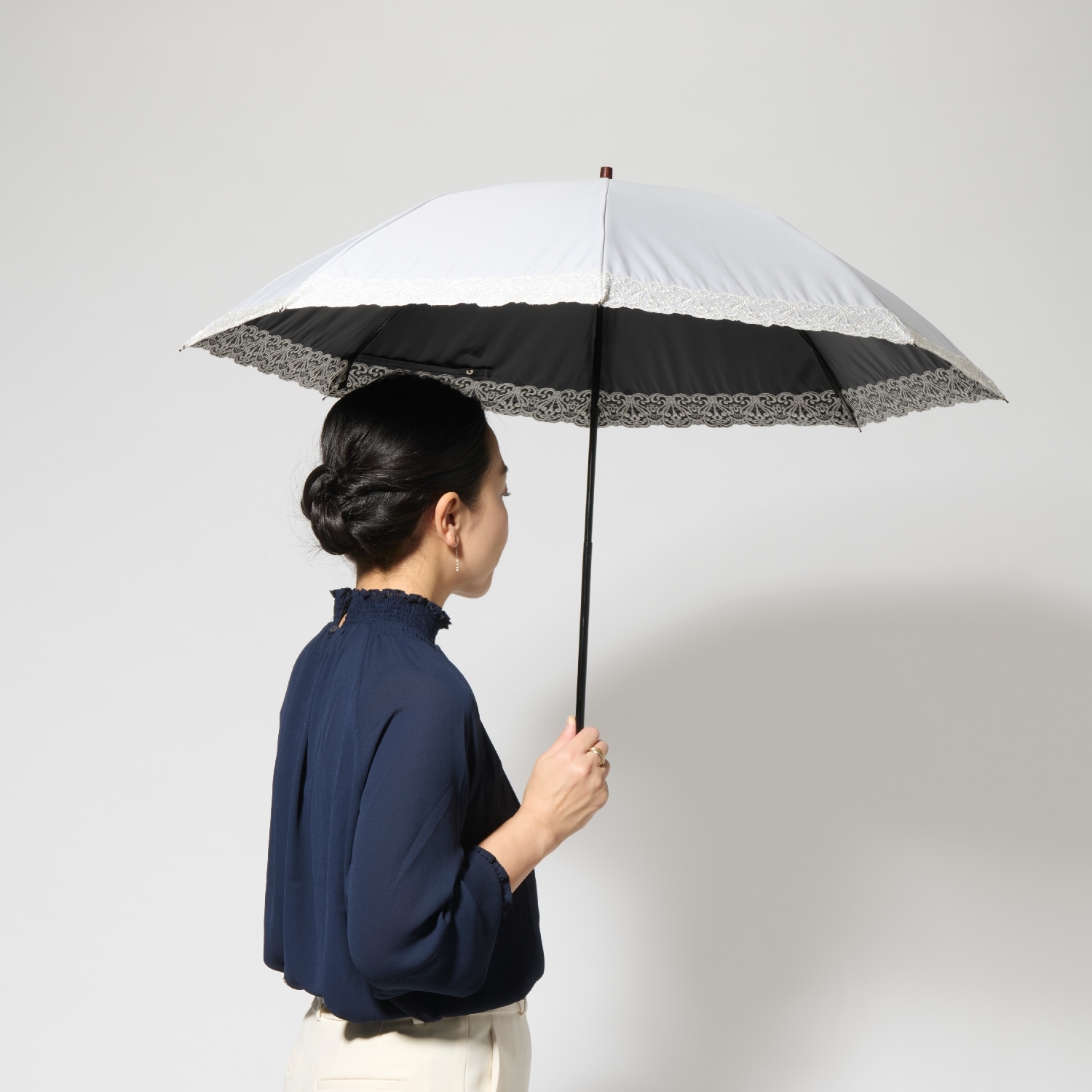 【オールウェザー対応】糸をたっぷり使ったエンブロイダリーレースが存在感抜群の晴雨兼用・一級遮光傘