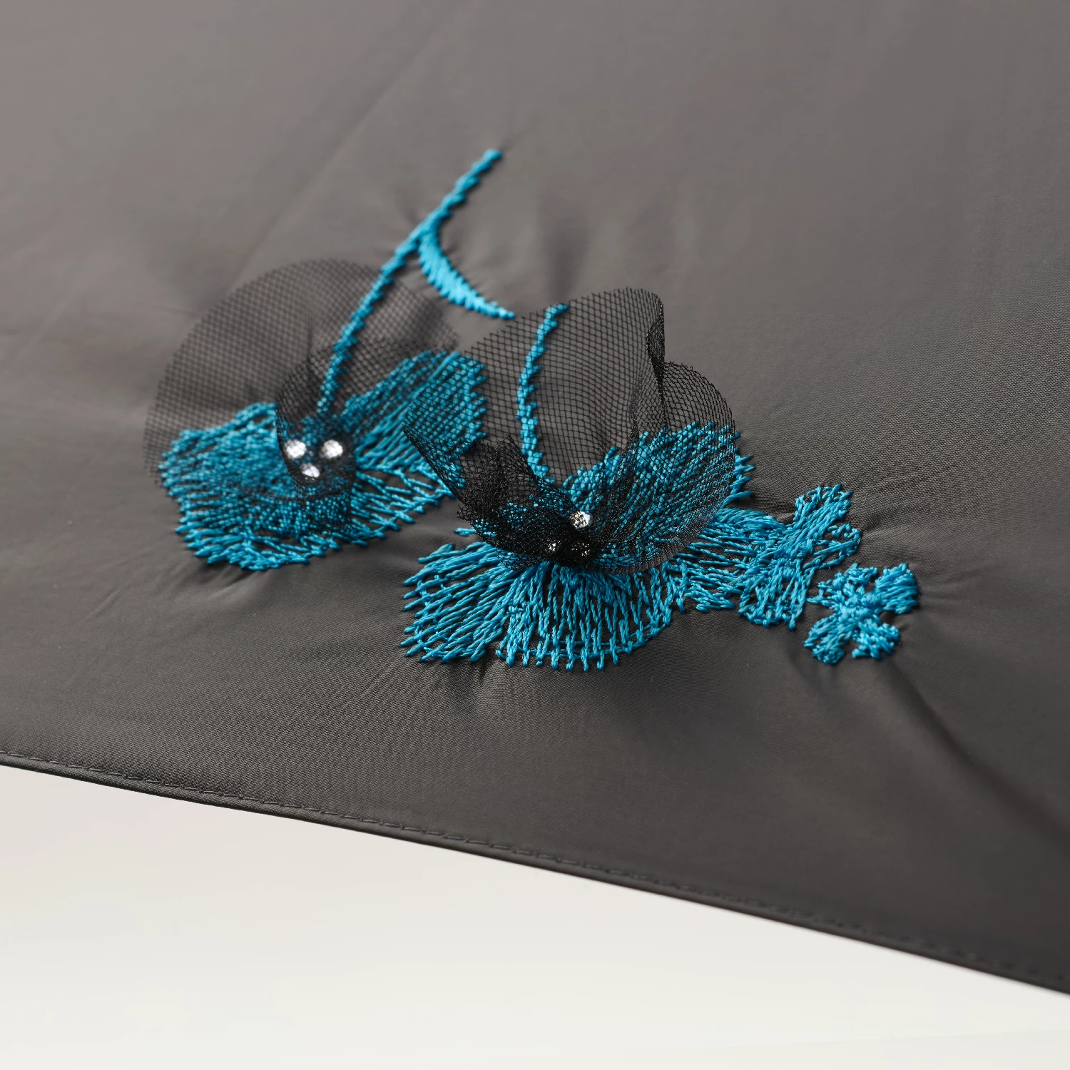 【オールウェザー対応】立体的なチュールのアップリケがポイントの一級遮光・晴雨兼用傘