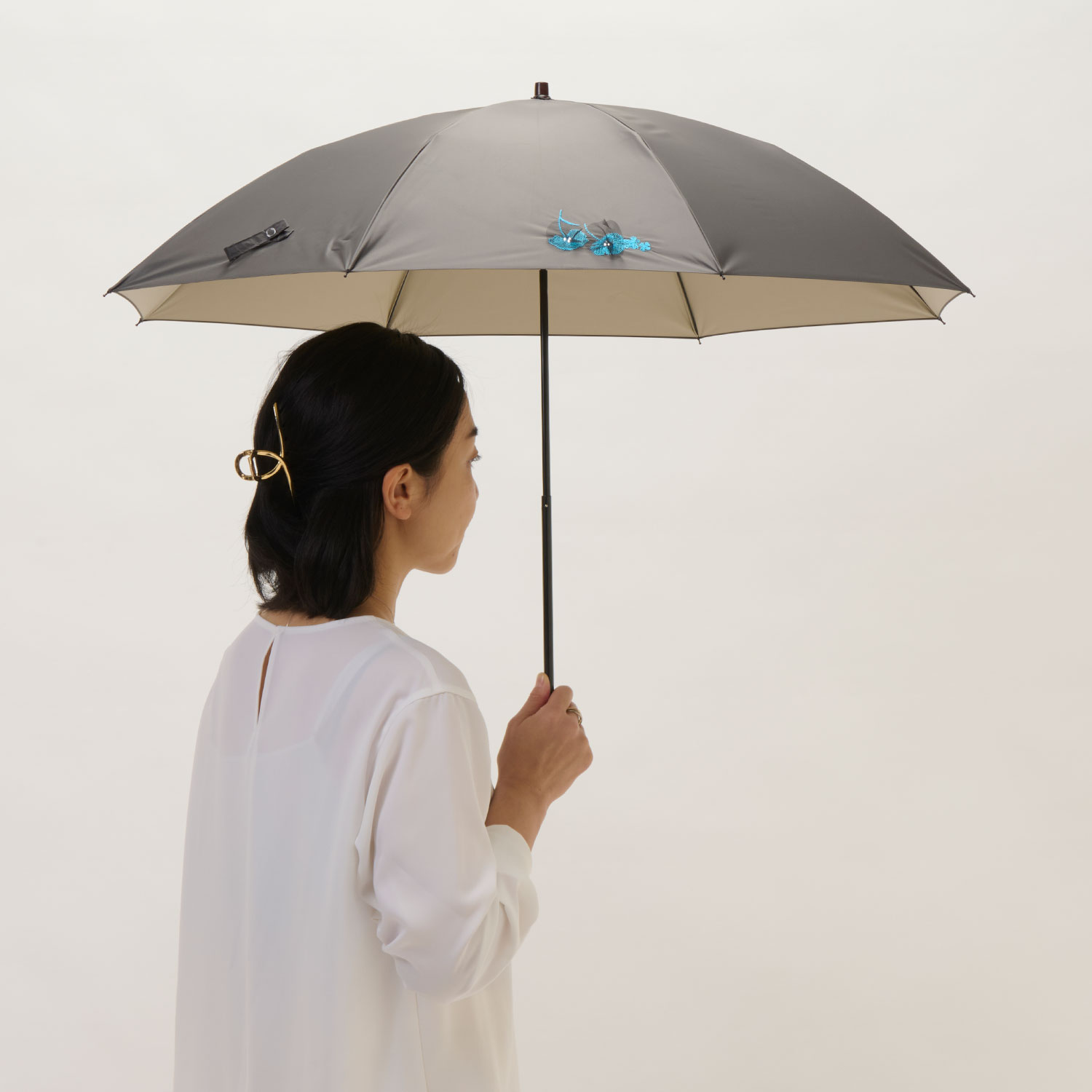 【レディース晴雨兼用傘】一級遮光-プティット-ショート-ライトグレー