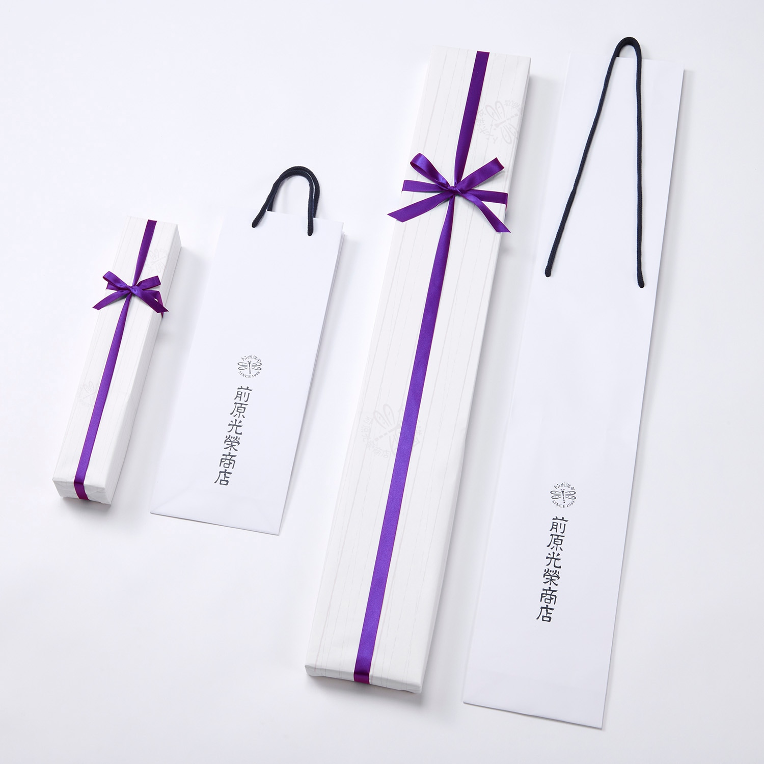 古来より日本で高貴な色とされてきた紫色は、喜寿や傘寿、卒寿など節目のお祝いのテーマカラーとしても多用されています。今回前原光榮商店では、そんな「紫色」をテーマに、敬老の日のギフトにぴったりなペア傘を製作いたしました。
